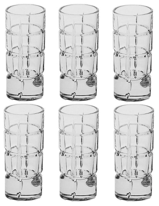 Le modèle est une excellente option pour s'amuser dans une entreprise bruyante. Le verre à partir duquel les récipients sont fabriqués est résistant aux dommages et durera longtemps sans perdre son apparence. La surface est brillante et ne se décolore pas avec une utilisation prolongée. Le paquet contient 6 produits, volume 55 ml.