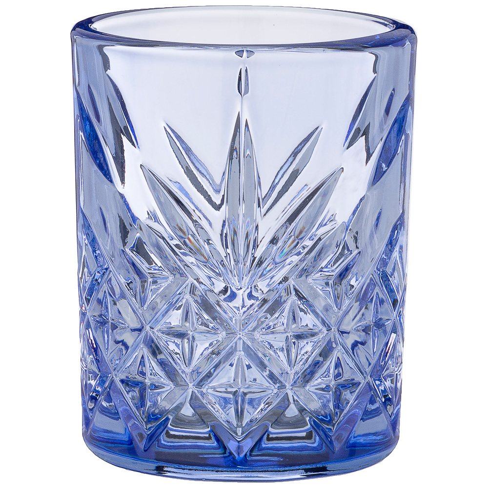 Le modèle est en verre bleu. La boîte contient 4 produits avec un gaufrage attrayant. Conçu pour la vodka et les cocktails. Le verre va au lave-vaisselle. Même en cas d'utilisation fréquente, le verre n'est ni rayé ni endommagé.