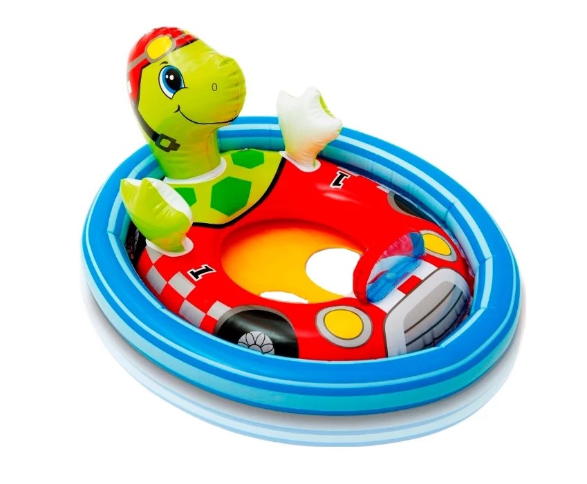 Le cercle avec des trous spéciaux pour les jambes convient aux tout-petits de plus de 1 an. Un produit adapté doit correspondre à l'âge, au poids, le traitement des ouvertures de jambe avec des coutures souples est obligatoire. Un bel ajout est un pare-soleil et la tête et le cou d'un personnage de dessin animé préféré auxquels s'accrocher.