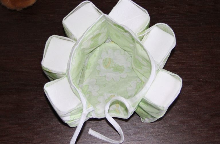 Il est fabriqué à partir d'un simple bonnet en tissu, avec des poches sur la surface extérieure, des cubes de mousse. Les rubans peuvent tenir, déplacer l'enfant dans l'eau de la salle de bain, de la piscine.