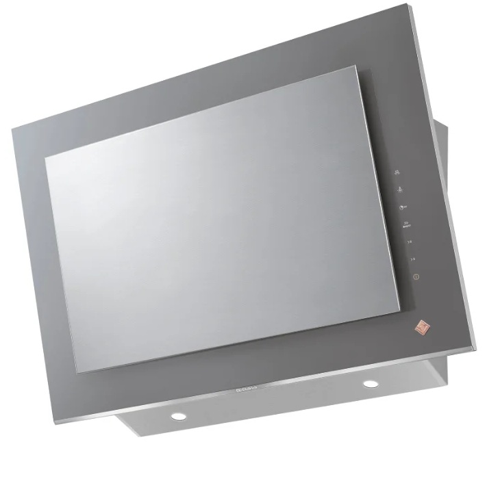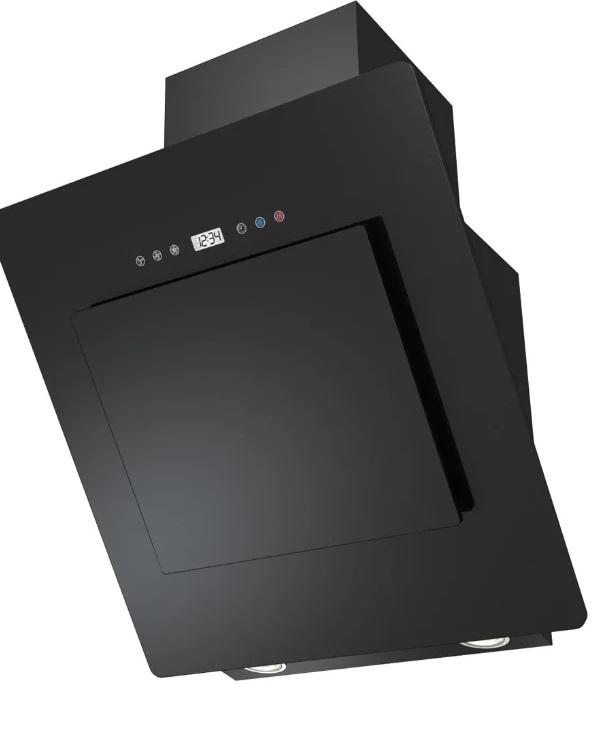 Hotte avec commande tactile et affichage situé en haut du panneau. Les lampes LED sont situées sous la porte à différents bords du cadre. Leur forme est carrée. Le filtre est respectivement à graisse et à charbon, l'équipement fonctionne en mode de retrait et de circulation. L'air est aspiré autour du périmètre. Il y a une minuterie et un clapet anti-retour.