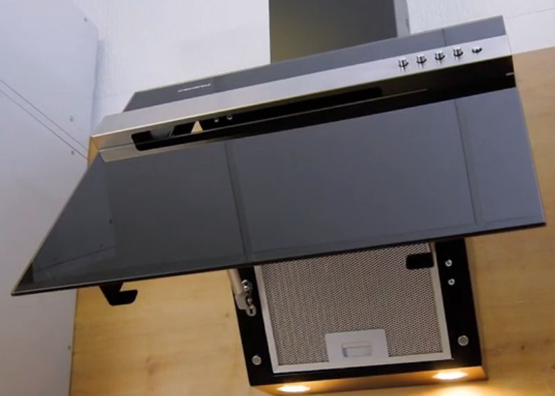 L'équipement est fixé au mur au-dessus du poêle. Il fonctionne en deux modes, équipé d'un panneau de commande tactile avec un écran à cristaux liquides. Il y a deux bouteilles rondes avec éclairage halogène. L'arrêt automatique de l'équipement après un certain laps de temps (fixé par une minuterie) est prévu.La qualité du nettoyage est assurée par un double filtre et un clapet anti-retour. L'aspiration est effectuée autour du périmètre. Le moteur peut fonctionner à différentes vitesses, ce qui affecte la consommation d'énergie, la vitesse et la qualité d'aspiration.
