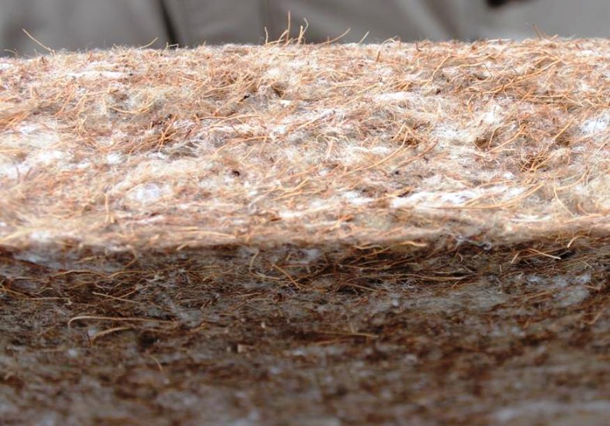 Malgré l'abondance de matières premières dans la nature, le processus d'extraction est extrêmement laborieux. Pendant des mois, les fibres sont trempées dans de l'eau salée, séchées, peignées et pressées à la main. Après le traitement au latex. Il est utilisé pour prévenir la scoliose, l'arthrite et l'ostéochondrose.