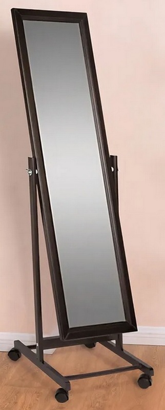 Ce produit sur roulettes sera un excellent élément décoratif de tout intérieur, ce qui le rend très pratique pour la maison et d'autres locaux. Il est fermement maintenu par le cadre pendant le mouvement et vous permet également de régler l'angle de la feuille de miroir, ce qui permet de mieux voir les vêtements sélectionnés sous différents angles. Il peut être installé en toute hauteur dans l'entrée, la salle de bain, la chambre, le dressing. C'est très pratique, car beaucoup ne sont pas satisfaits du fait que la toile réfléchissante dans le placard ou le modèle mural habituel ne donne pas une image complète de l'apparence. Le coût recommandé pour les chaînes de magasins est de 4100 roubles.