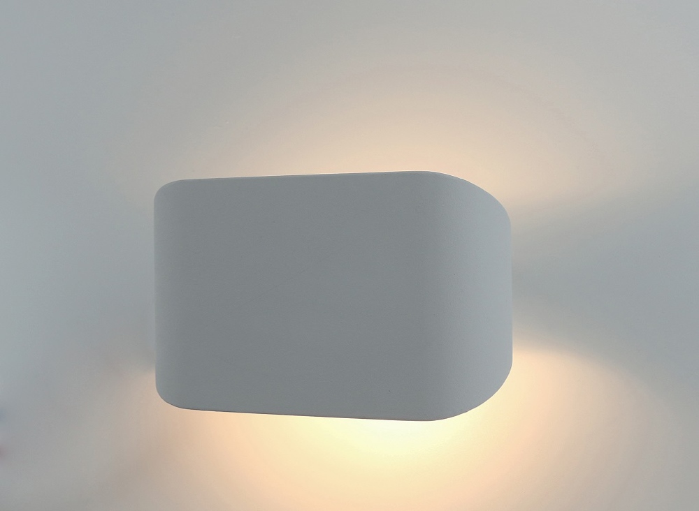 La lampe intégrée complétera n'importe quel intérieur. Au-dessus du niveau du mur dépasse un petit abat-jour blanc mat. L'éclairage peut être d'intensité variable, selon les préférences personnelles. Les lampes économisent de l'énergie en utilisant des LED. L'applique peut être sélectionnée à la fois pour la chambre et le couloir.