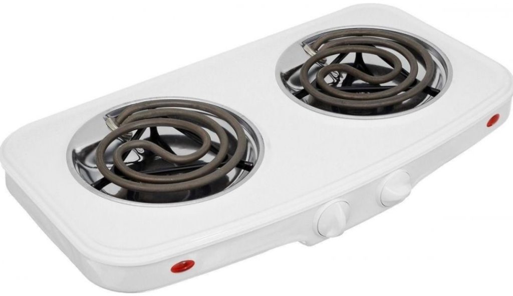 Cuisinière électrique de table de forme carrée pour une place. Il est équipé d'un élément en spirale où sont placés les ustensiles de cuisine pour cuisiner. Il y a un indicateur marche/arrêt. La surface de travail est en acier émaillé. La conception est équipée de petites pattes en plastique.