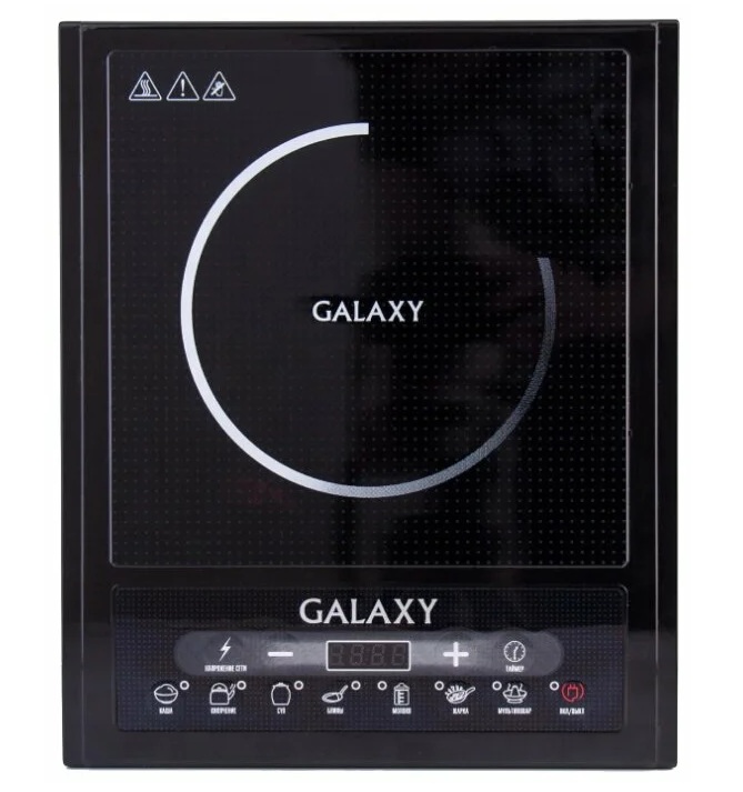 Cuisinière de bureau à commande tactile, équipée de diverses fonctions. Il y a une minuterie avec arrêt automatique, un petit écran, plusieurs modes de cuisson.La couleur du panneau est noire avec des éléments blancs et rouges. Le brûleur a deux contours. Le paquet comprend des instructions et une carte de garantie.
