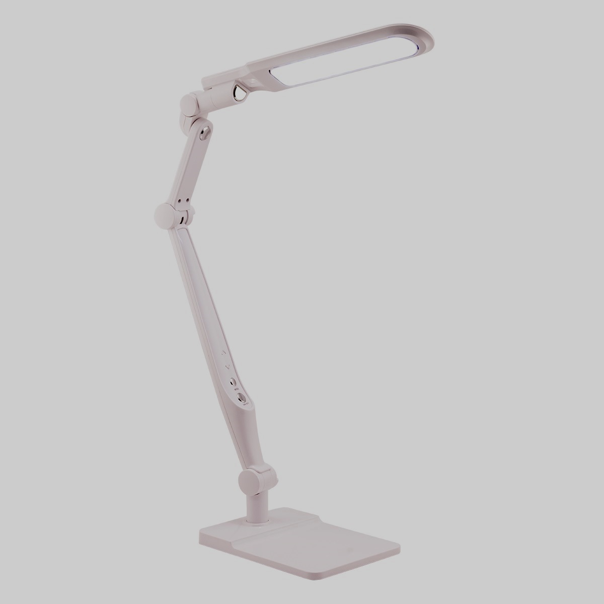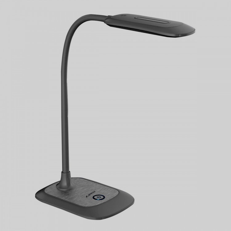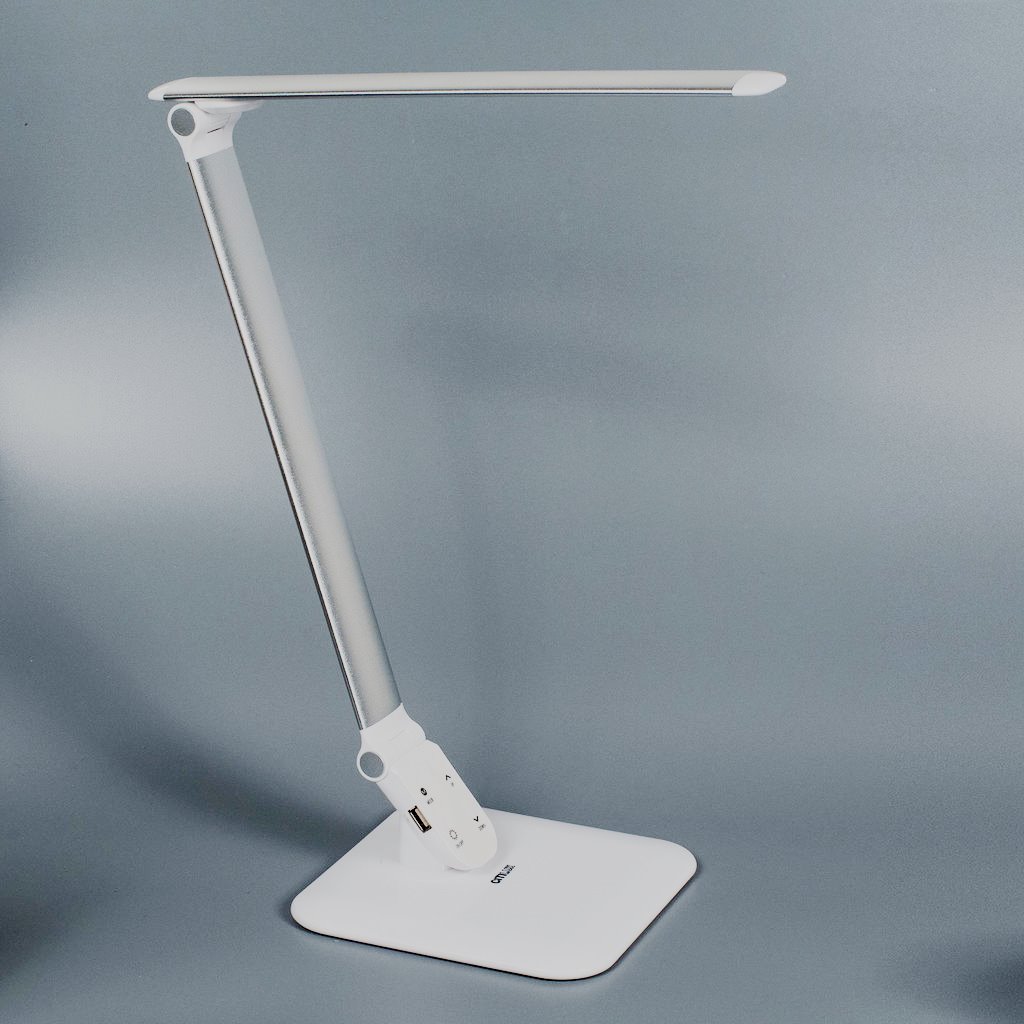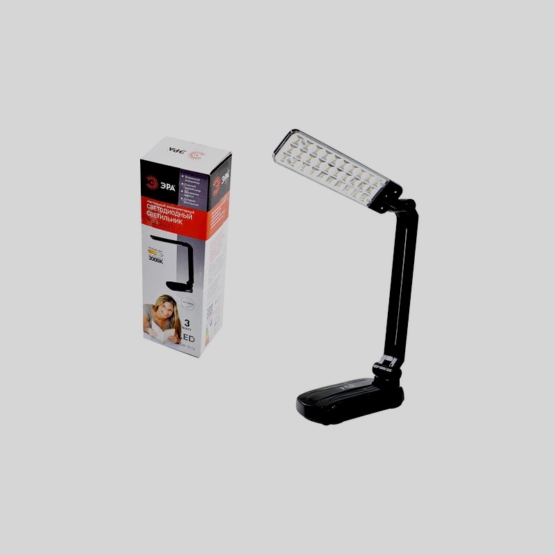 Modèle idéal pour un étudiant. Il est très populaire en raison de son apparence attrayante. Équipé de trois boutons. Ils vous permettent de régler l'intensité de l'éclairage, d'allumer et d'éteindre l'appareil. N'affecte pas négativement la vision, vous permet de faire vos devoirs ou de lire des livres pendant une longue période. Le degré d'éclairage et l'angle d'inclinaison sont définis en fonction des besoins. La base est recouverte de caoutchouc, ce qui empêche la lampe de glisser de la table. Dans la fabrication d'éléments structurels, le métal et le plastique sont utilisés. L'interrupteur est situé sur le corps.