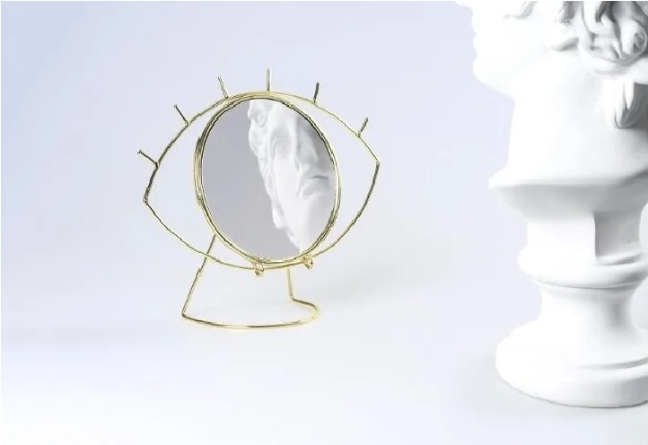 Passons maintenant directement aux produits de bureau. Malgré le fait que de nombreuses fonctionnalités des réflecteurs domestiques de tous les cas d'utilisation ont été répertoriées ci-dessus, les réflecteurs de bureau qui nous intéressent sont également agréables par leur diversité. Leur taille est quelque peu limitée en raison du site de placement proposé, mais les concepteurs neutralisent habilement ce problème. Les matériaux sont également sélectionnés pour tous les goûts, budgets et styles d'intérieur. À partir des moins chers, ces miroirs sont fabriqués avec des bases en plastique, en métal, en bois et même en porcelaine et en pierre naturelle. Tous diffèrent par leur qualité et leur durée de vie, bien qu'avec une utilisation prudente, même les conceptions bon marché dureront de nombreuses années. Et le tri selon les principales catégories de la forme de conception est resté: