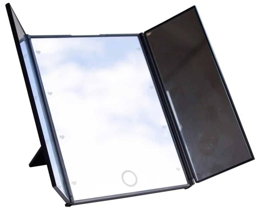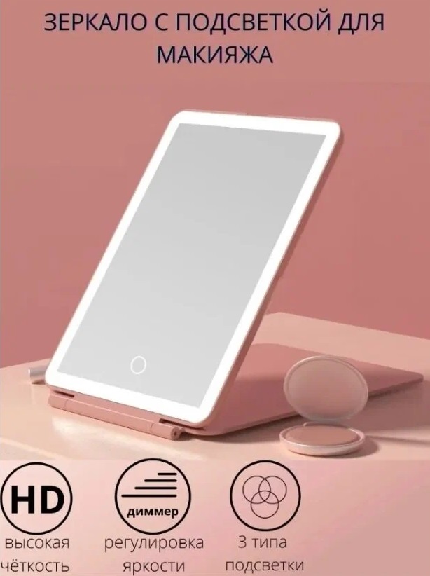 Complètement grand et confortable. Les faces latérales pivotent de 180 degrés. Plusieurs zones de grossissement (2, 3, 10 fois). Le rétroéclairage est ajusté en douceur en maintenant le bouton enfoncé pendant une longue période. Design élégant, taille appropriée, espace libre sur le support pour diverses petites choses, charge à la fois à partir d'un câble et de batteries. Tout est inclus dans ce modèle.