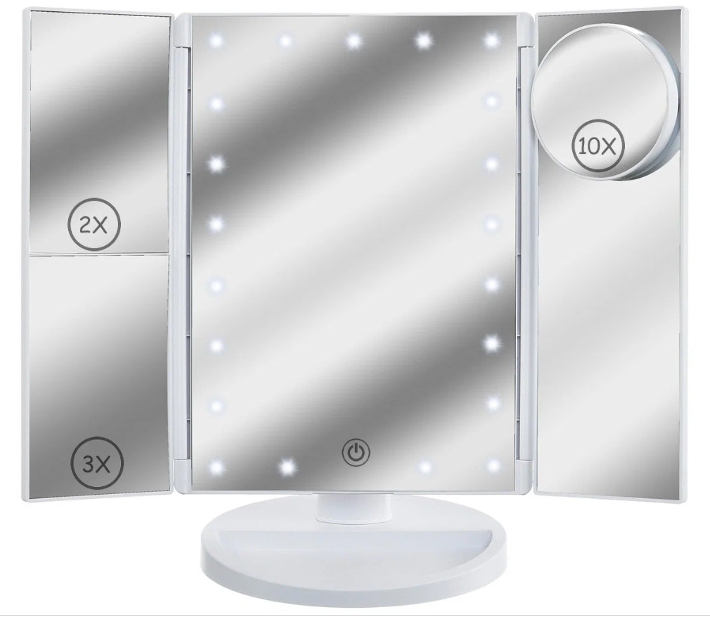 Amélioré par le fait qu'il est équipé non seulement d'un grossissement, mais également d'un rétroéclairage électrique avec réglage tactile. L'éclairage blanc frappe avec naturel et ne déforme pas les couleurs. Fin et élégant, féminin et léger.