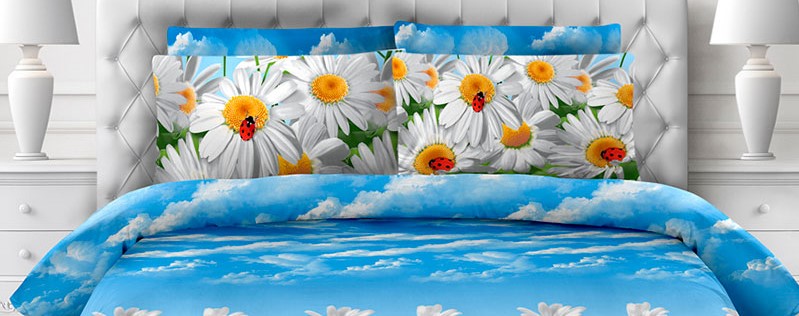 Une taie d'oreiller avec un imprimé printanier d'un champ de camomille ajoutera du confort et une ambiance estivale. Convient à tous les intérieurs, peut être utilisé dans une chambre d'enfant. La peinture est appliquée de manière spéciale, elle ne perd pas la luminosité de la couleur même avec une utilisation quotidienne prolongée. Coût : 732 roubles.