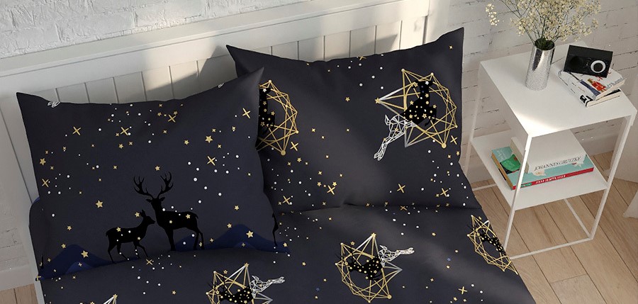 Le kit retient bien la chaleur sèche, offre une grande respirabilité et ne s'électrise pas. Vous pouvez commander une confection individuelle, une taie d'oreiller avec un ensemble ou séparément. Des spécialistes feront un modèle pour votre conception et vos dimensions. Convient pour la décoration de la chambre. Coût : 407 roubles.