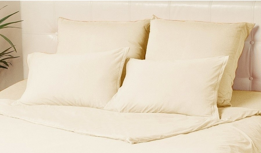 L'ensemble beige a une résistance accrue à l'abrasion et aux influences extérieures. N'accumule pas la poussière et l'électricité statique. Grâce à la large valve, il se met rapidement et facilement sur l'oreiller, offre un ajustement sûr pendant le sommeil. Poids : 200 gr. Coût : 810 roubles.