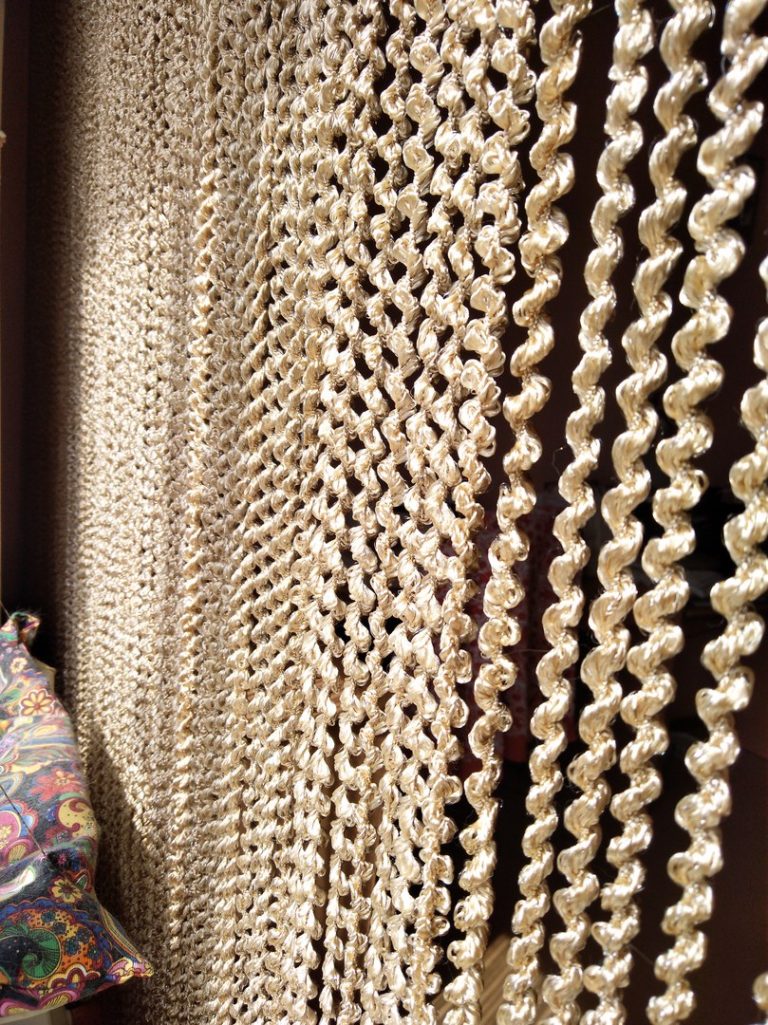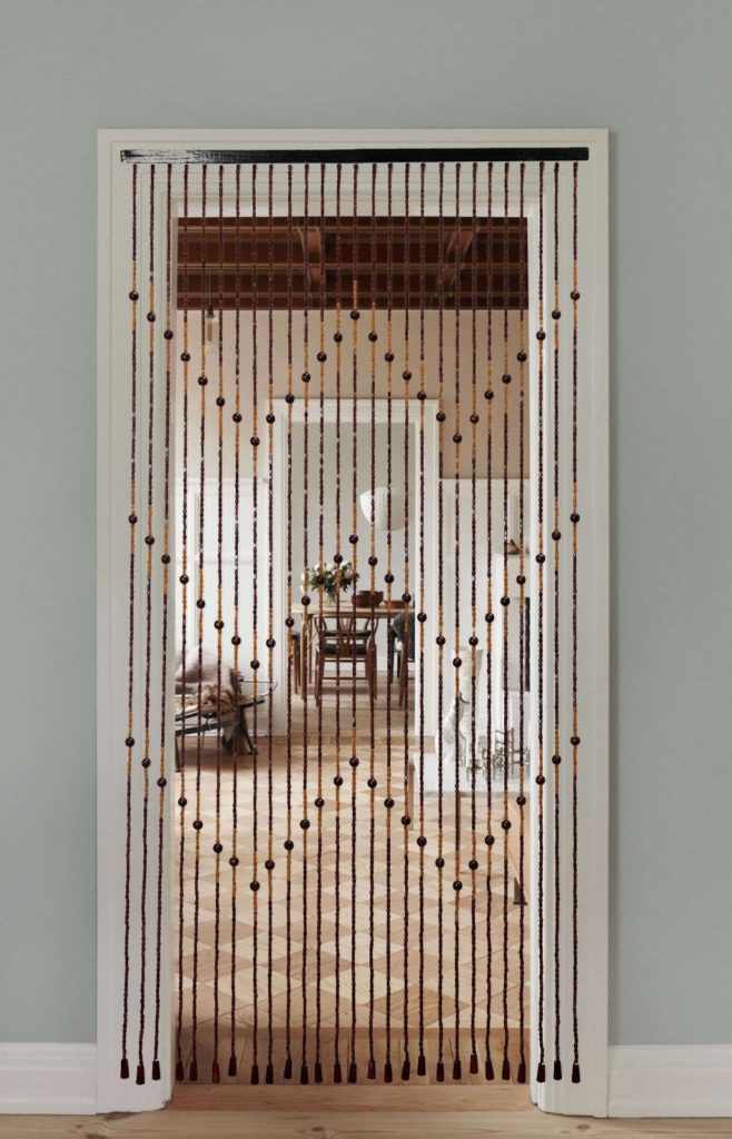 Les options les plus courantes sont les fibres synthétiques avec l'ajout de velours ou d'œillets. Les options en bois et en bambou sont plus écologiques et sûres, mais en même temps elles sont un peu plus chères. Les rideaux en perles de verre et en pierre décorative conviennent aux portes ou à la décoration d'un café stylisé, ils sont faciles à entretenir, mais peuvent se fissurer et se casser sous des charges prolongées.
