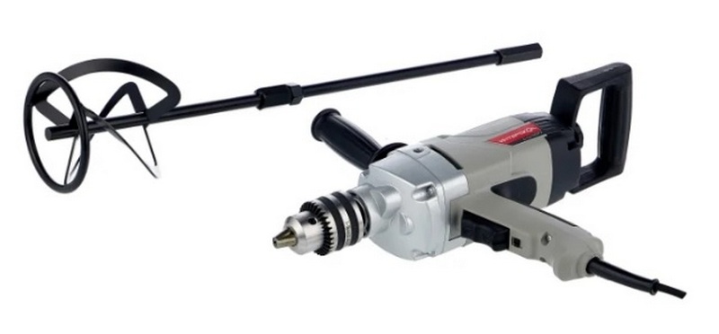 Ce malaxeur à perceuse de 1,2 kW est idéal non seulement pour faire des trous, mais aussi pour mélanger divers mélanges et peintures. Il est pratique de régler la vitesse de la broche. L'avantage de l'appareil est la présence de la fonction inverse. Le couple de l'outil est de 160 Nm : ce paramètre permet de réaliser des trous de grand diamètre et de grande profondeur. Le diamètre maximum pour un trou avec un outil utilisant un mandrin de 16 mm est de 40 mm. Le kit comprend une poignée supplémentaire et une clé de mandrin. Le coût recommandé pour les chaînes de vente au détail est de 7600 roubles.