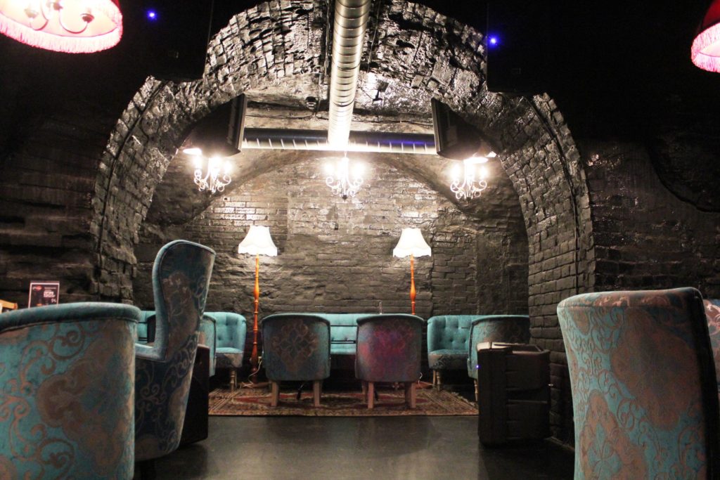 L'intérieur du club se compose de deux niveaux: sur le niveau supérieur, il y a des canapés moelleux, sur le niveau inférieur, il y a la plus grande scène de la ville et un espace de danse spacieux et spacieux.