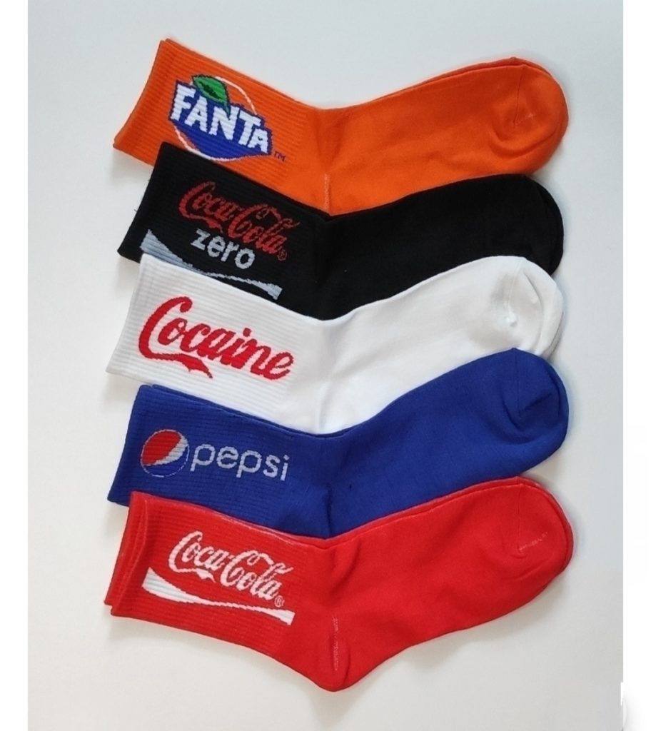 Couleur : rouge, bleu, blanc, noir, orange avec inscriptions : fanta, pepsi, cola.