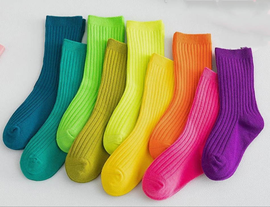 La marque présente plusieurs modèles de chaussettes en coton sans talon. Une variété de couleurs, lumineuses, populaires auprès des enfants.