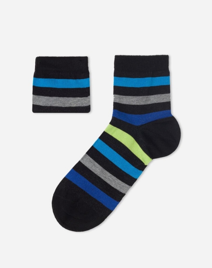 Couleur : noir avec rayures colorées, rayures gris chiné, rayures bleues.