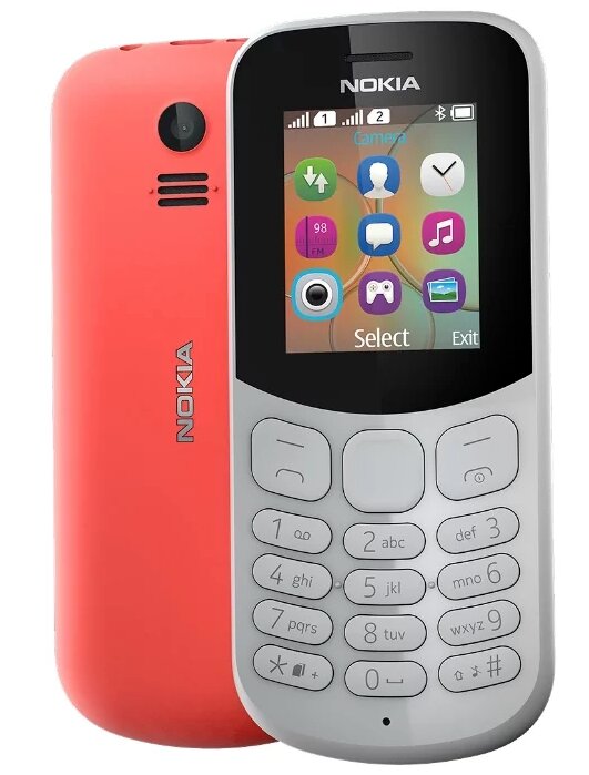 Deux couleurs : noir, rouge. Forme - monobloc avec un grand écran couleur, des touches, un boîtier en plastique.