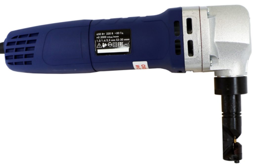 Cisailles à métaux domestiques CALIBRE EN-700/3.2M, électriques, alimentées en courant alternatif 50 Hz, 220 V. Puissance 700 watts.Cela suffit pour découper manuellement des tôles jusqu'à 3,2 mm d'épaisseur. Un travail à long terme sans interruption est possible avec une épaisseur de tôle plus petite.