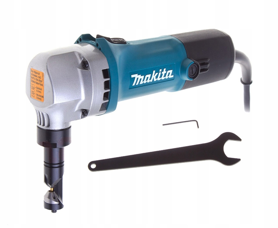 La réinstallation de la matrice est progressive, en la tournant à 360 degrés et en la fixant lors de la rotation à 90 degrés. Le Makita JN 1601 a une jauge intégrée pour l'épaisseur du matériau à couper. Le rayon d'arc minimum est de 4,5 cm Alimenté par un réseau domestique. La consommation électrique du modèle est de 550 W.