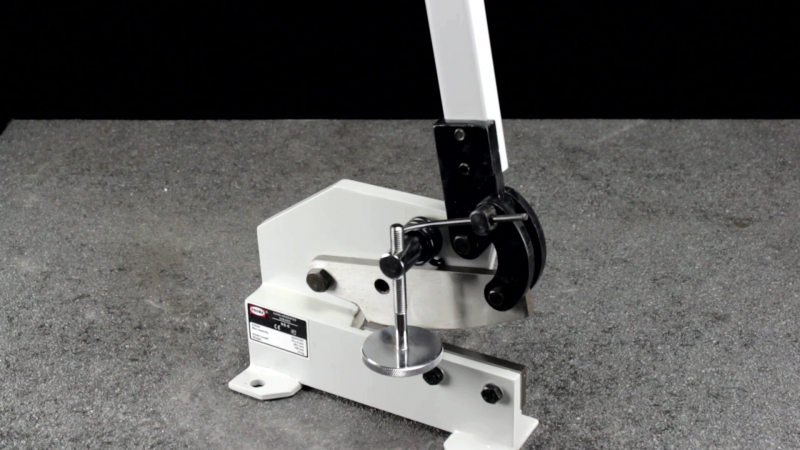 Le modèle stationnaire de type levier avec une installation de bureau HS-6 est conçu pour couper des tôles non trempées jusqu'à 6 mm d'épaisseur. Longueur de coupe en un seul passage - jusqu'à 15 cm, optimal. Sur les cisailles guillotines à levier, vous pouvez couper une barre jusqu'à 11 mm de diamètre. Le produit FERROX est fabriqué en Chine.