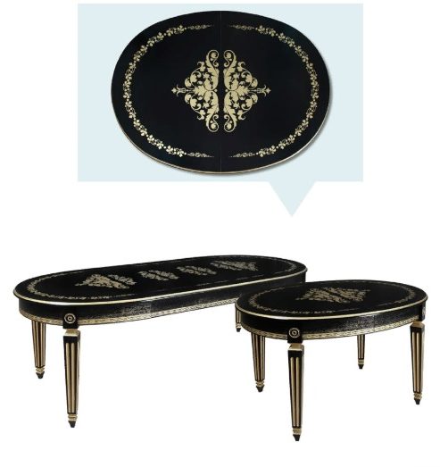 Table ovale extensible en bois de hêtre massif de style gothique avec un motif rappelant le motif celtique sur toute la face arrière. Le mécanisme coulissant vous permet d'augmenter jusqu'à deux fois la surface de travail du placage de chêne naturel. En raison de sa capacité à se transformer, le design s'adaptera parfaitement à un salon classique de toute taille, devenant ainsi la décoration la plus importante de l'intérieur. Dimensions (monté) : 130 cm * 78 cm ; déplié : longueur 229 cm (3 inserts). Le prix moyen est de 55 102 roubles. Le vendeur prévient que la couleur des tables peut différer de celle déclarée, les unes des autres, expliquant cela par l'origine naturelle du hêtre.