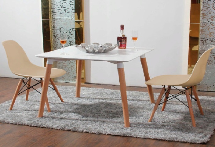 La table rectangulaire de la marque Copine est fabriquée en MDF avec revêtement en mélamine. Protège des chocs, de toutes sortes de dégradations - Chant PVC. 4 pieds classiques en hêtre massif, qui parlent de leur stabilité et de leur résistance. Grâce à des matériaux de haute qualité, le plan de travail blanc est facile d'entretien et résistant aux produits ménagers et chimiques. Dimensions table : 120*80, convient pour une cuisine de taille moyenne et 8 personnes assises. Le design de mobilier minimaliste a été développé par Sean Dick, un designer américain. Prix : à partir de 20 300 roubles. Disponible en 2 couleurs - noyer et blanc. Il est possible d'acheter via des boutiques en ligne.