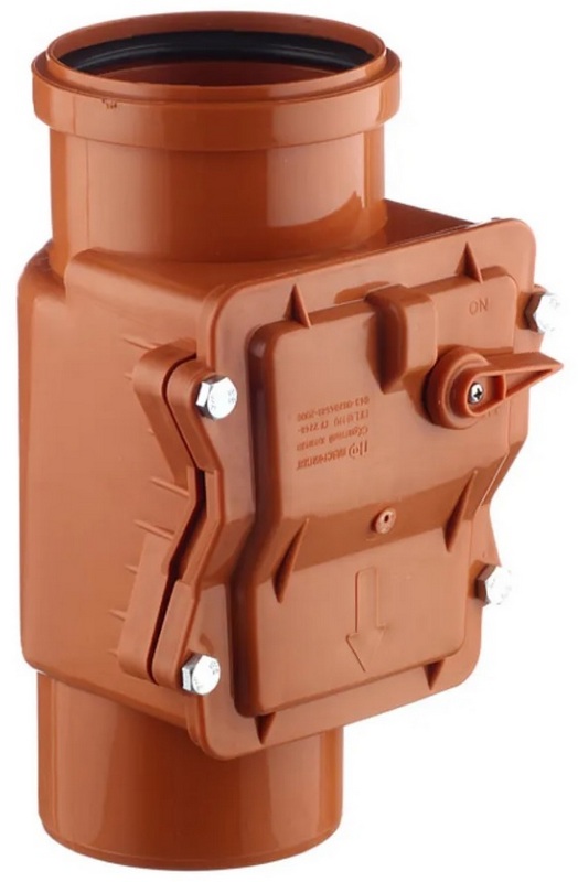 L'échantillon est recommandé pour une installation dans des maisons privées, des appartements, des bureaux, en production, etc. Conçu pour protéger contre l'écoulement des drains en sens inverse. Le principe de fonctionnement est mécanique: avec le bon sens d'écoulement de l'eau, le registre dévie et assure un passage sans entrave du débit, avec le sens inverse du débit d'eau, le registre ferme complètement la section de tuyau et ne laisse pas passer le débit au-delà la vanne. Montage horizontal uniquement. Il est monté dans des endroits qui permettent de séparer les égouts internes de ceux externes (par exemple, dans le sous-sol de la maison, dans la fosse à l'extérieur du bâtiment, à la sortie des égouts des appartements et des bureaux des étages inférieurs dans le canalisation commune du bâtiment). Les raccords d'entrée/sortie de la vanne sont conçus pour être raccordés à n'importe quel tuyau de prise d'égout en polypropylène ou en PVC d'un diamètre de 110 mm. Il est possible de travailler via des adaptateurs.Le coût recommandé pour les chaînes de magasins est de 2700 roubles.
