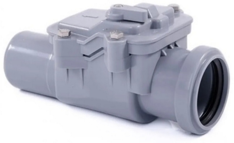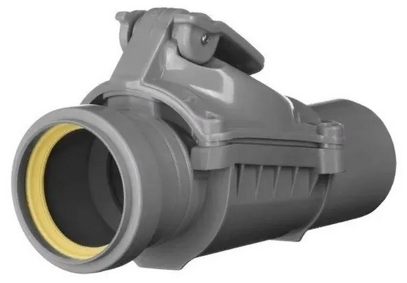 L'échantillon a une sortie horizontale et est utilisé dans les systèmes d'égouts internes. La vanne empêche l'écoulement inverse des flux en cas de colmatage des canalisations d'égout et sert également d'obstacle à la pénétration d'insectes dans la pièce. Le corps est en polypropylène. Le coût recommandé pour les chaînes de magasins est de 926 roubles.