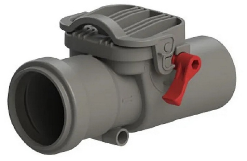 Le modèle est destiné à être installé en position horizontale.Il est monté sur des tuyaux d'un diamètre de 50 mm, qui sont fixés au mur avec des clips de fixation. Le produit est capable de créer une protection fiable pour plusieurs appareils de plomberie à la fois, s'ils sont connectés à une seule installation. L'appareil est équipé d'un levier manuel. Il permet de bloquer complètement le passage, empêchant le flux inverse des eaux usées.