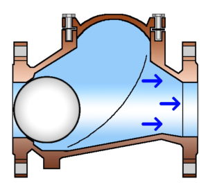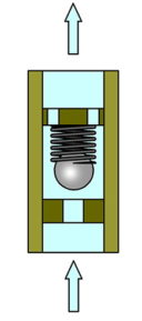 Le dispositif de verrouillage mobile se déplace librement à l'intérieur du produit. Si le flux se déplace dans la direction requise, la bille s'éloigne du siège, ouvrant légèrement l'écart avec le flux.