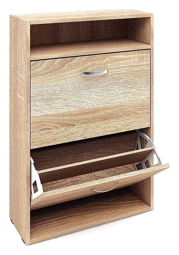Le type de chaussure ouvert se distingue par son aspect attrayant. Le modèle est en bois clair, il s'intégrera donc parfaitement dans n'importe quel style. Grâce à sa conception légère, le meuble agrandit visuellement la pièce et vous permet de ranger les chaussures de manière compacte. La margelle se compose de deux étagères spacieuses et d'un petit tiroir pour les petits objets. Vous pouvez ranger les clés ou les produits d'entretien des chaussures dans le tiroir. Du fait que les étagères ne sont pas fermées, les chaussures sont ventilées et ne perdent pas leur apparence pendant longtemps.