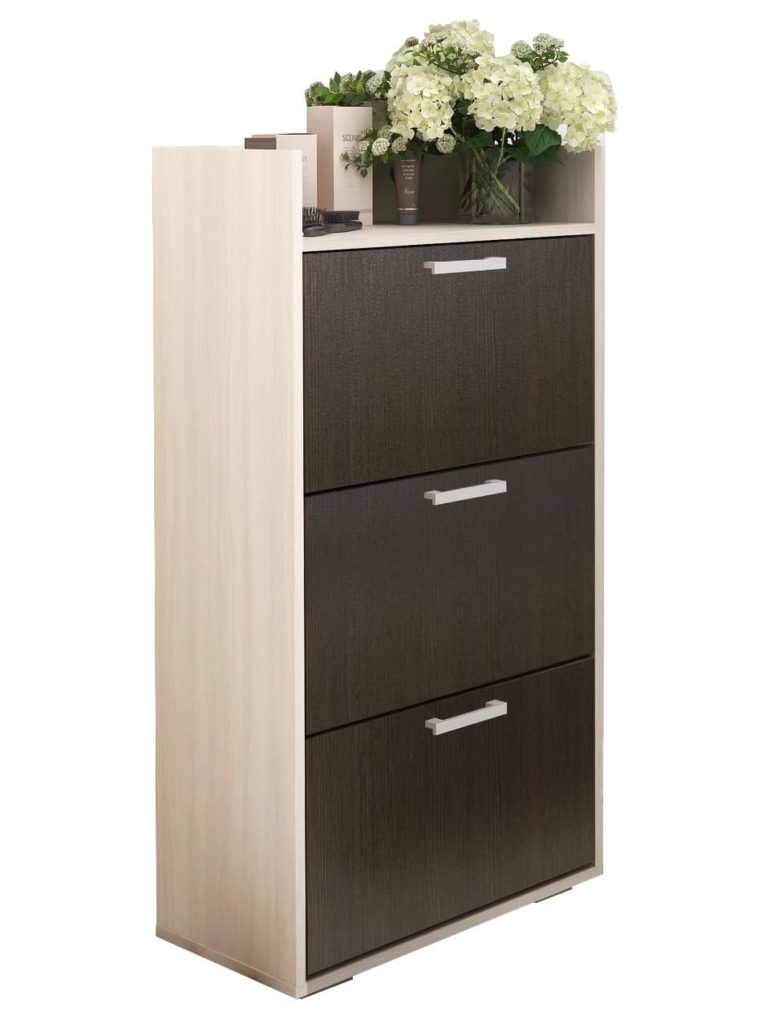 La boîte à chaussures est étroite, elle est donc idéale pour une petite pièce. Monté contre un mur ou dans un coin. Les étagères s'ouvrent en biais, il est donc pratique de plier les chaussures, tout est toujours à sa place.Il a une conception de stockage pour 10 paires, il convient donc à une petite famille. En plus des tiroirs pratiques, il y a une étagère pour placer de petites choses. Par conséquent, les clés et autres petits objets seront toujours bien en vue.