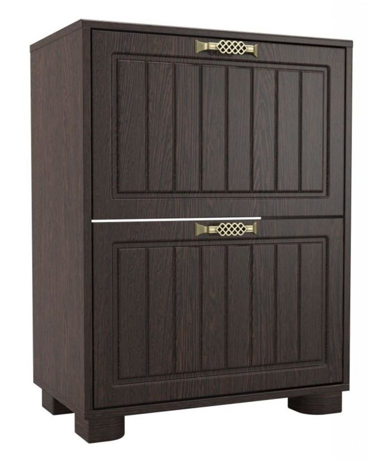 Le modèle avec une armature renforcée est idéal pour un grand nombre de chaussures. Composé de 2 compartiments avec 3 étagères. Une caractéristique du modèle est que l'un des compartiments a un pouf moelleux et un tiroir caché pour ranger de petits objets. Grâce à sa bonne capacité, les chaussures peuvent être rangées de manière compacte, de sorte que le produit est souvent choisi pour une famille nombreuse. De plus, les caractéristiques du produit incluent le fait que les étagères sont rapidement démontées et prennent peu de place.