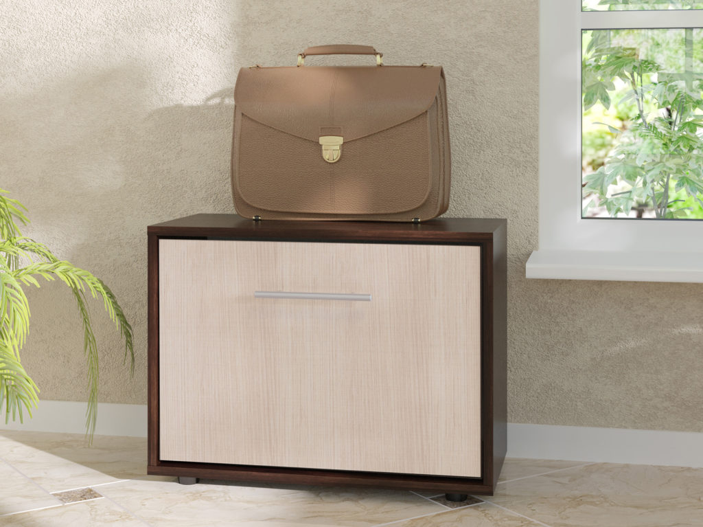 La conception fermée sera idéale pour une petite pièce. Le modèle dispose de 2 grands compartiments et d'un tiroir pour les petits objets, le type fermé vous permet de cacher les chaussures des regards indiscrets. Le modèle est en bois et se distingue par ses caractéristiques extérieures et est facile à entretenir. La structure en bois est de couleur claire, elle convient donc à tous les intérieurs.