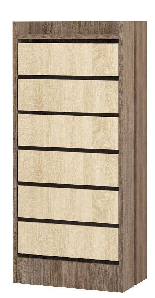 Un meuble à chaussures simple et élégant prend peu de place et deviendra un meuble indispensable dans n'importe quelle pièce.Le modèle est en bois, il diffère donc non seulement par son aspect pratique, mais également par son aspect attrayant. 6 bureaux spacieux s'ouvrent facilement, et sont divisés en 2 étagères.