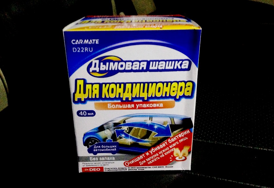 Le principe des dames est assez simple. Le climatiseur est réglé sur le mode de circulation interne. L'air doit se déplacer dans la direction "vers le visage". Le régime de température est minimal. Demarre le moteur. La bombe fumigène est retournée et un trou est percé dans sa partie inférieure conformément aux exigences des instructions ci-jointes. Le bouton est enfoncé. Dans les 30 secondes, le vérificateur doit être installé. Sinon, il deviendra très chaud et compliquera les actions ultérieures.