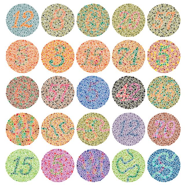 Les tables polychromes de Yustova, Ishikhara ou Rabkin, familières à beaucoup, ressemblent à des grappes concentrées de cercles de différentes tailles avec des couleurs primaires et secondaires de la même luminosité. Certains d'entre eux, sur fond d'autres, forment une sorte de figure, une figure géométrique ou une ligne sinueuse.Selon certains tableaux, il est possible d'identifier non seulement un défaut, mais de préciser le type d'anomalie avec son degré.