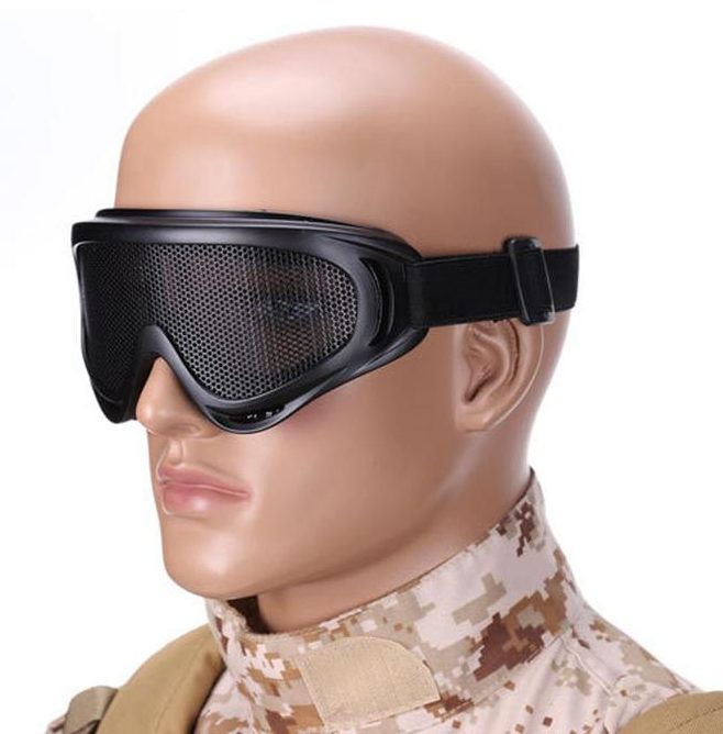 Achat de lunettes en treillis avec maille tissée. Sur un maillage tissé, la balle peut être écrasée et un fragment tombera dans l'œil, il faut donc choisir un maillage plat.