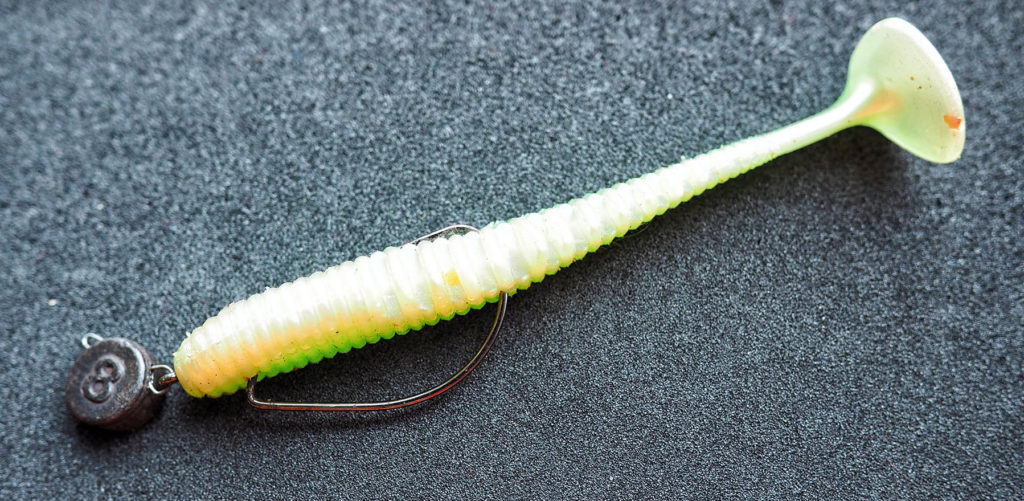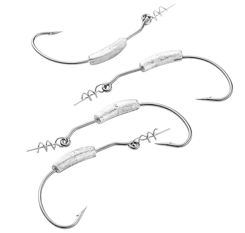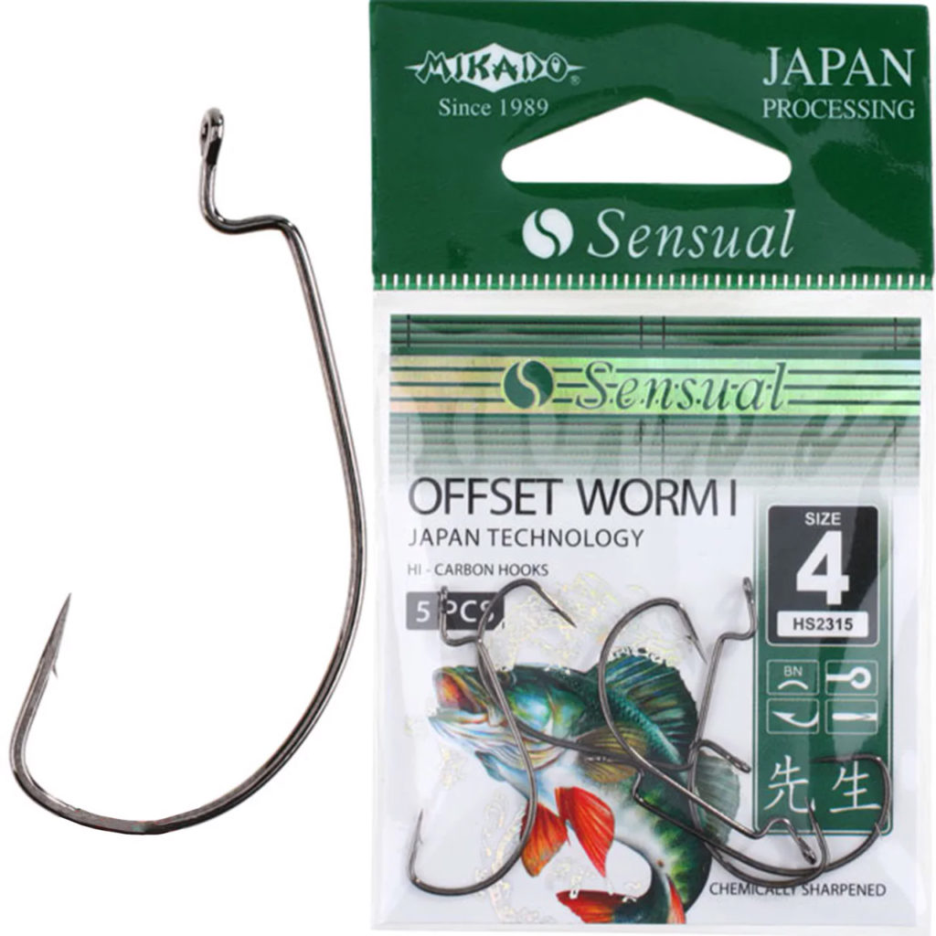 Les hameçons décalés comprennent des hameçons simples, qui se distinguent par une forme spéciale - le coude du décalage a une petite "marche" située devant l'anneau de fixation. La "marche" est nécessaire pour fixer solidement l'appât en silicone, agissant comme une butée, empêchant l'appât de glisser de l'hameçon. La pointe est cachée au plus profond de son corps. Lorsqu'un poisson prédateur attaque l'appât, le bout de la pointe sort et s'accroche au corps du poisson.