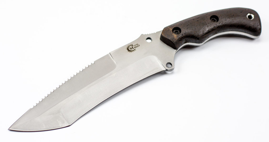 Le couteau de survie tout métal "Bourane" devient le leader du classement. Fabriqué à partir de l'acier Damas le plus résistant (1200 couches). Diffère dans la longue netteté et la résistance à l'usure. Pour la commodité du propriétaire, un fil pointu est prévu sur le bout de la lame, ce qui rend le produit presque universel.