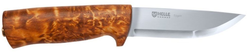 La poignée arrondie est fixée à la partie coupante de l'outil de manière montée. Il est principalement fabriqué à partir de bouleau de Carélie, car les produits de ce type de bois ne glissent pas et ne refroidissent pas la main par temps froid. L'outil est idéal pour la pêche et convient à presque tous les types de travaux de chasse et sur le terrain.