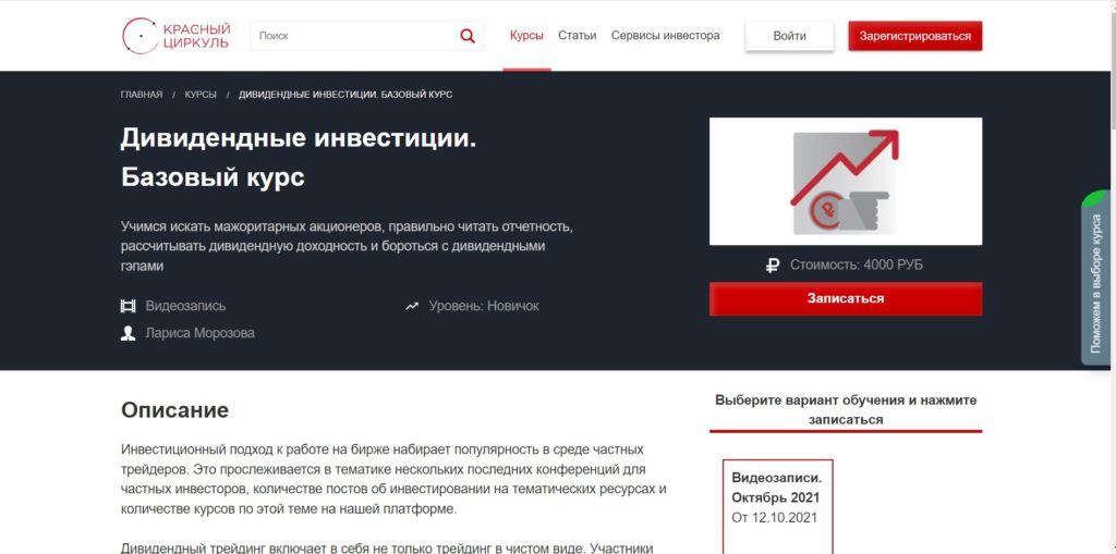 Le cours de base d'une enseignante expérimentée Larisa Morozova fournira les connaissances initiales nécessaires sur la possibilité de gagner un revenu grâce aux dividendes. La taille optimale du capital initial est considérée, les risques sont étudiés en détail. Coût - 4000 roubles.