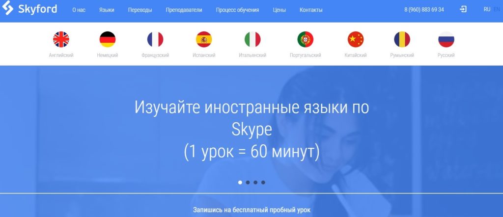 Une équipe pédagogique nombreuse vous permet de sélectionner un professeur individuellement, pour chaque demande. La formation implique la mise à disposition gratuite de documentation pédagogique et méthodologique (manuel, audio, vidéo). Chaque 16e leçon a lieu avec un professeur qui est un locuteur natif et ne parle pas russe. La leçon dure 55 minutes, se déroule en tête-à-tête. Prix : 690 roubles par leçon.