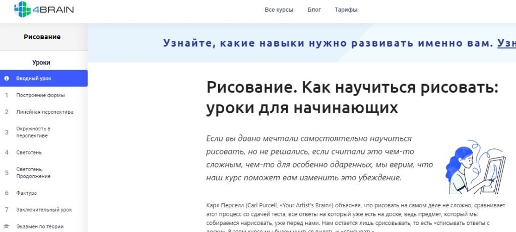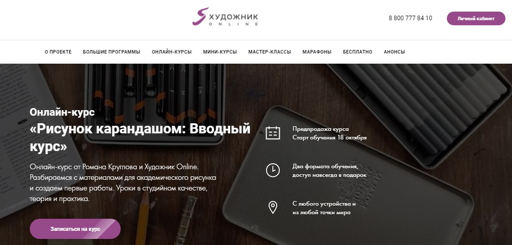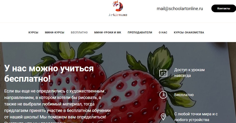 Une école d'art en ligne populaire propose des cours gratuits pour les débutants.L'accès aux leçons est donné pour toujours, elles peuvent être consultées depuis n'importe quel appareil. Deux fois par mois, des enseignants compétents organisent des webinaires ouverts aux étudiants, où tout le monde se réunit avec l'enseignant et pose des questions dans un chat en temps réel. Si une personne n'a pas le temps de se connecter à un webinaire, elle peut le revoir à tout moment.