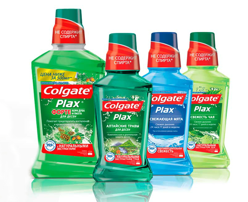 Une autre marque bien connue de produits de soins dentaires et bucco-dentaires. La gamme de bains de bouche Colgate Plax (C.P.) de cette marque est actuellement la plus populaire. Il comprend 7 types de rinçages, différant par leur composition et leur direction d'action. Les principaux ingrédients actifs des produits de cette série sont le fluorure de sodium et le chlorure de cétylpyridinium.