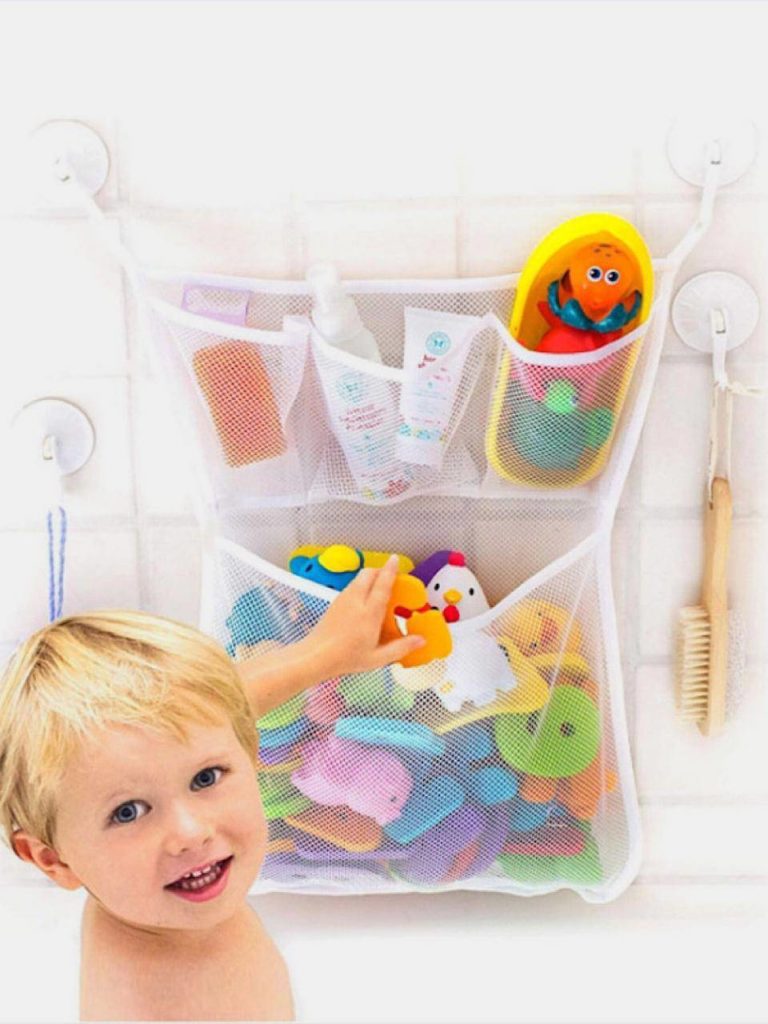 Support d'angle pour jouets pour enfants, vous pouvez le fixer sur le bain lui-même ou sur le mur à proximité. Le tissu en maille permet à l'eau de s'écouler, grâce à cela les jouets sèchent plus rapidement. Il prévient également la moisissure et le mildiou. Convient aux enfants à partir de 6 mois. Coût moyen : 1267 roubles.